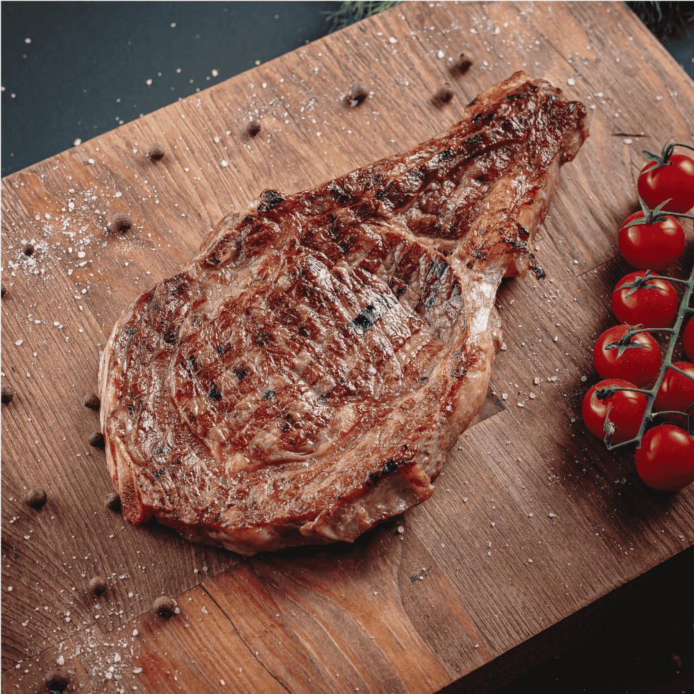 Сочный рибай на кости с глубоким мясным ароматом. Косточка сохраняет максимум сока внутри при жарке и делает вкус по-настоящему насыщенным. Идеальный выбор для плотного ужина