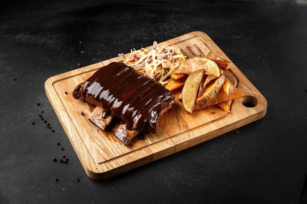 Говяжьи ребра Slow&Low с картофельными дольками, салат Коул Слоу