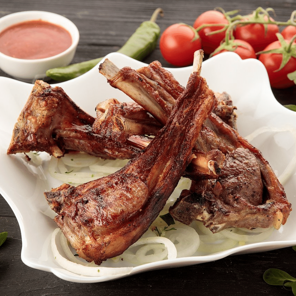 Отборный антрекот из баранины на косточке, обжаренный до золотистой корочки. Кость сохраняет сочность мяса, делая его невероятно нежным и ароматным. Подается с лавашом и маринованным луком.